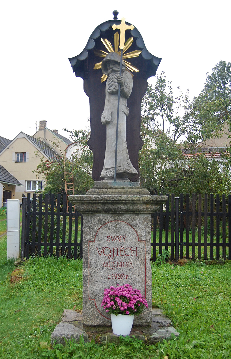 Týž výtvarník je původcem sochy sv. Vojtěcha z umělého pískovce před jeho rekreačním stavením. Myšlenkou vytvořit ji se začal zaobírat od roku 1997, kdy se připomínalo milénium Vojtěchovy mučednické smrti na misijní cestě k Prusům. Koncepci sochy konzultoval s břevnovskými benediktiny, nositeli odkazu sv. Vojtěcha, který tento řád do Čech přivedl a klášter v Břevnově roku 993 spolu s knížetem Boleslavem II. založil jako vůbec první mužský klášter v zemi. Světec je zpodobněn jako poutník s holí zakončenou jetelovým křížem, symbolem víry a Nejsvětější Trojice, v jedné ruce a knihou (biblí) v druhé. Na podstavci, druhotně využitém kamenickém díle vrcholně barokního původu, je vtesaný nápis „SVATÝ / VOJTĚCH / MILENIUM / L. 1997. P“, na zadní straně dřevěného přístřešku pak vsazena kovová destička s textem „AUTOR / FRANTIŠEK VALENA / POSVĚCENO / 24. 9. 2000“. To bylo v neděli před sv. Václavem. Slavnostnímu odhalení a požehnání sochy, které proběhlo od 15:30, bylo přítomno asi 250 lidí a tři kněží – P. František Cibuzar, administrátor farnosti Nepomuk a vikář, P. Jiří Čepl, nový duchovní správce kasejovické farnosti, a P. Pavel Kuneš z Prahy, mimo jiné novinář, publicista, propagátor liturgických reforem 2. vatikánského koncilu, hudebník a dlouholetý člen pražského souboru Říše loutek, tedy ze stejné branže jako František Valena. Od roku 2000 má tedy Újezd opět svou sochu sv. Vojtěcha a vojtěšská tradice je tak zde zachována pro další generace.