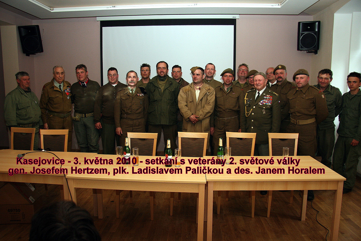 Po slavnostním příjezdu válečných veteránů v doprovodu starostky Kasejovic Marie Čápové a místostarosty Václava Červeného k pomníku „Obětem nacismu 2. světové války“ v místním parku, následovalo slavnostní položení věnce a kytice, kterého se zúčastnili rovněž přátelé Klubu 4. obrněné divize. Odtud se všichni přesunuli na náměstí. Zde starostka Marie Čápová slavnostně přivítala válečné veterány – generála Josefa Hercze, brigádního generála ve výslužbě, který bojoval v řadách československé zahraniční armády ve Velké Británii, nositele Řádu T. G. Masaryka, Československého válečného kříže, Řádu čestné legie a nositele vyznamenání Rytíř českého lékařského stavu, plukovníka Vladimíra Paličku, příslušníka 1. tankové brigády z východu, plukovníka Jiřího Vlasáka a Jana Horala, příslušníka 2. roty 2. tankového praporu Československé samostatné obrněné brigády, který byl přímým účastníkem osvobození Kasejovic dne 22. května 1945. Starostka města vzpomněla rovněž ty, kteří se letošních 65. oslav osvobození Kasejovic zúčastnit nemohli – plukovníka Stanislava Hniličku, nositele nejvyššího vyznamenání Řádu Bílého lva, plukovníka Josefa Křístka, člena 3. roty 2. tankového praporu Československé samostatné obrněné brigády a kapitána Rogera Boase, kapitány dělostřelectva 4. obrněné divize US Army, který dne žije v Kalifornii v San Franciscu.