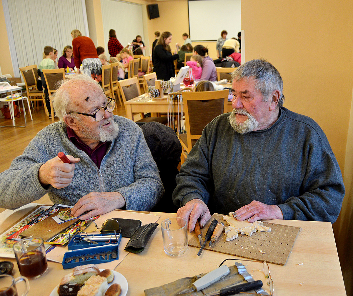 Nechyběli ani páni betlémáři, kterým jste mohli koukat pod ruku – jednomu pod dláto, druhému pod nůžky. A kdo nechtěl nic vyrábět, mohl si koupit nějaký drobný dárek či jen posedět u voňavého punče.