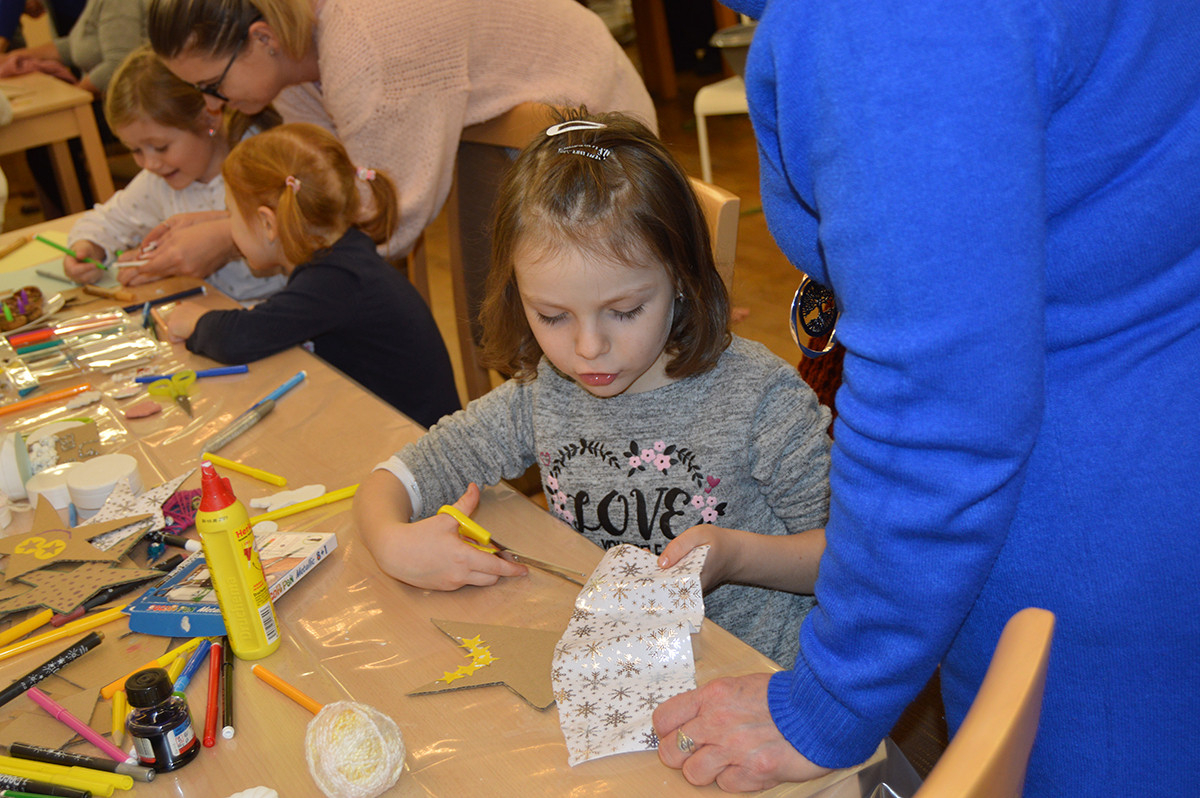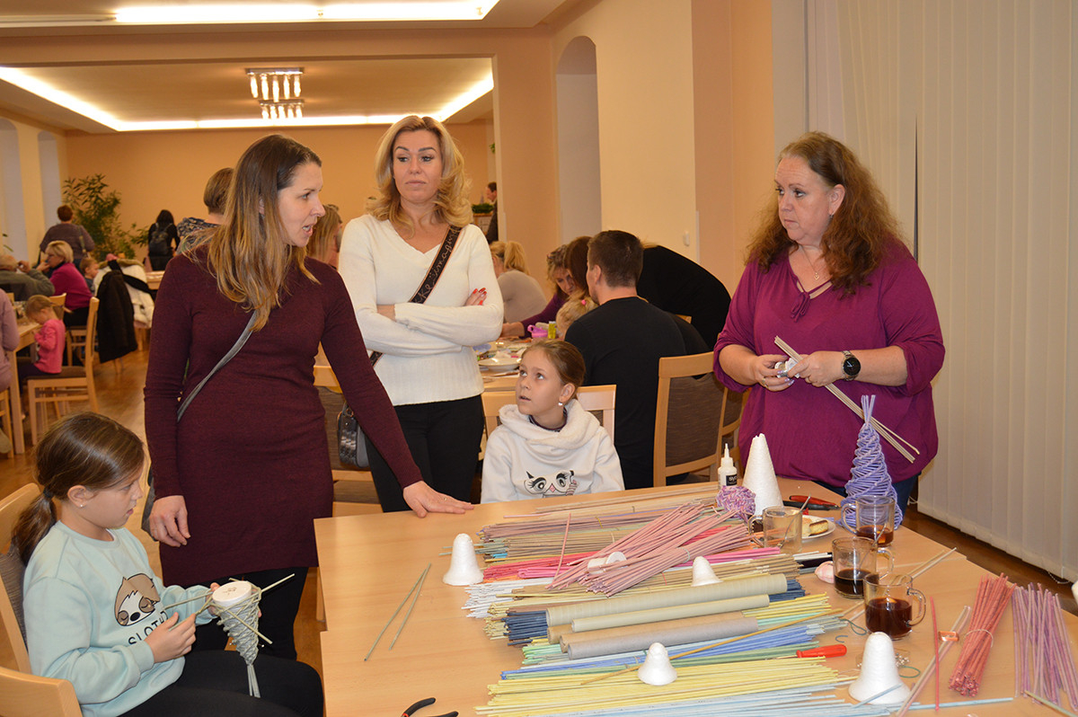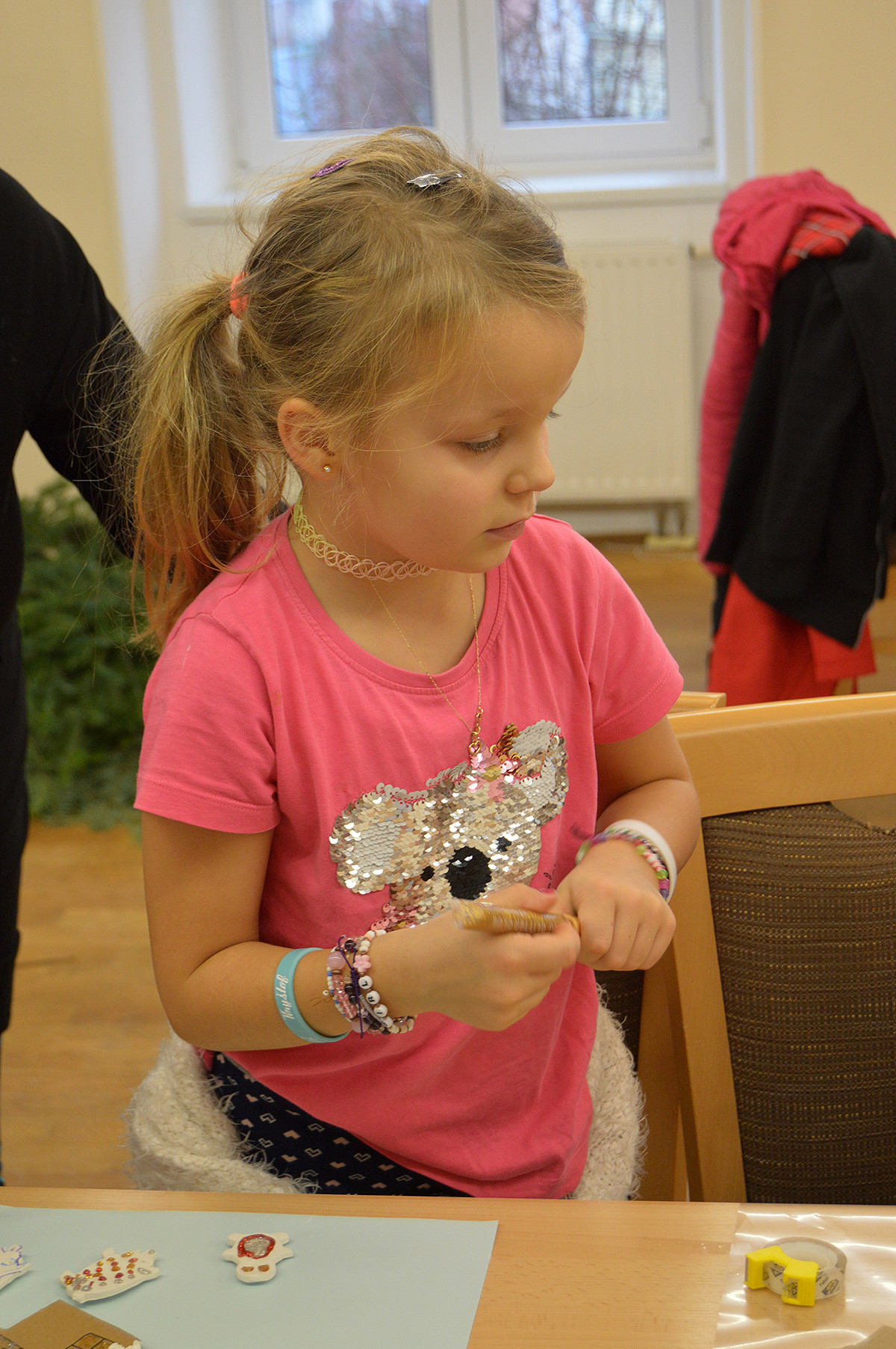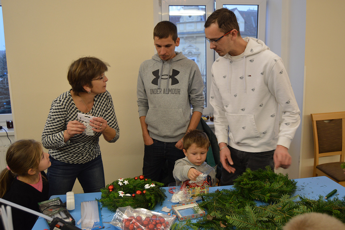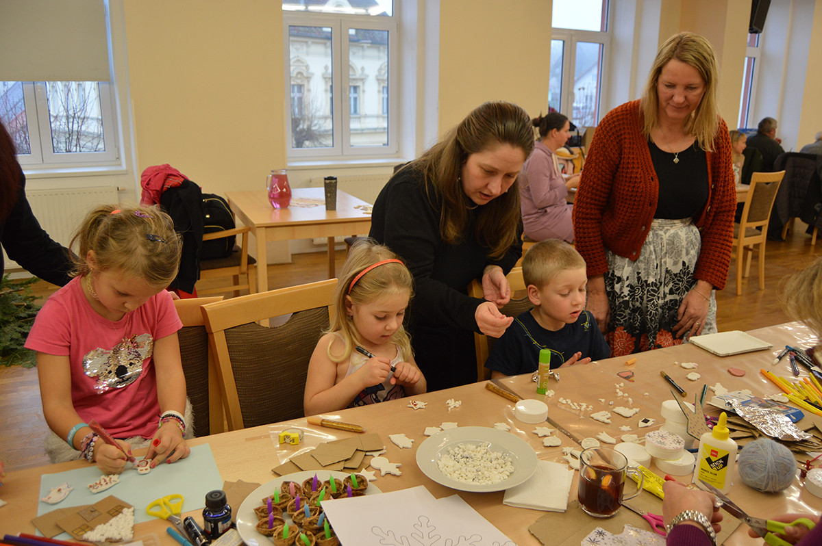 Než se tak stalo, přichystaly ženy z Komunitní školy, z.s. oblíbené adventní odpoledne. Vůně perníčků, koření a punče uhodila každého do nosu hned, jak otevřel dveře kulturního centra. Malí i velcí si mohli zhotovit adventní věnec, ozdobit perníčky, uplést dekoraci z papíru či si vyrobit vlastní náramek. Zvláště zdobení perníčků bylo velkým lákadlem pro děti, neboť při práci vždy ukápne nějaká cukrová poleva a ta moc dobře chutná. A některé děti ochutnaly hned i svůj nazdobený výtvor. V obležení dětí byl i dětský koutek, ve kterém si mohly namalovat magnetku, krásného anděla a vyrobit ledacos pěkného.