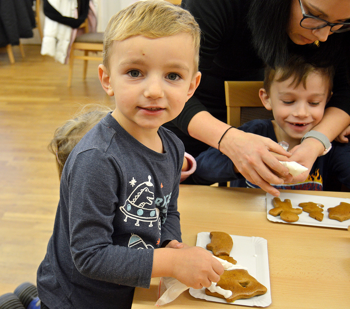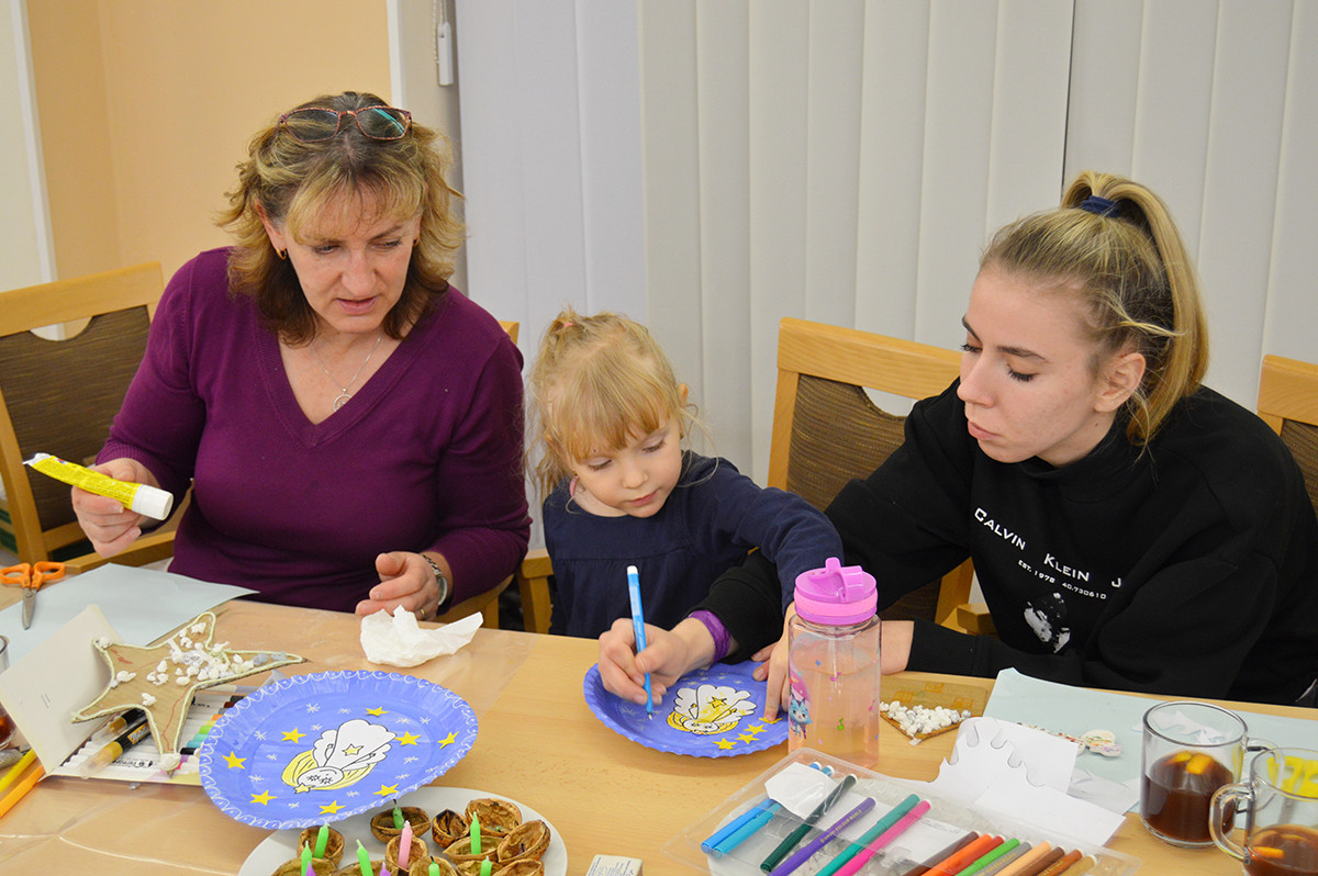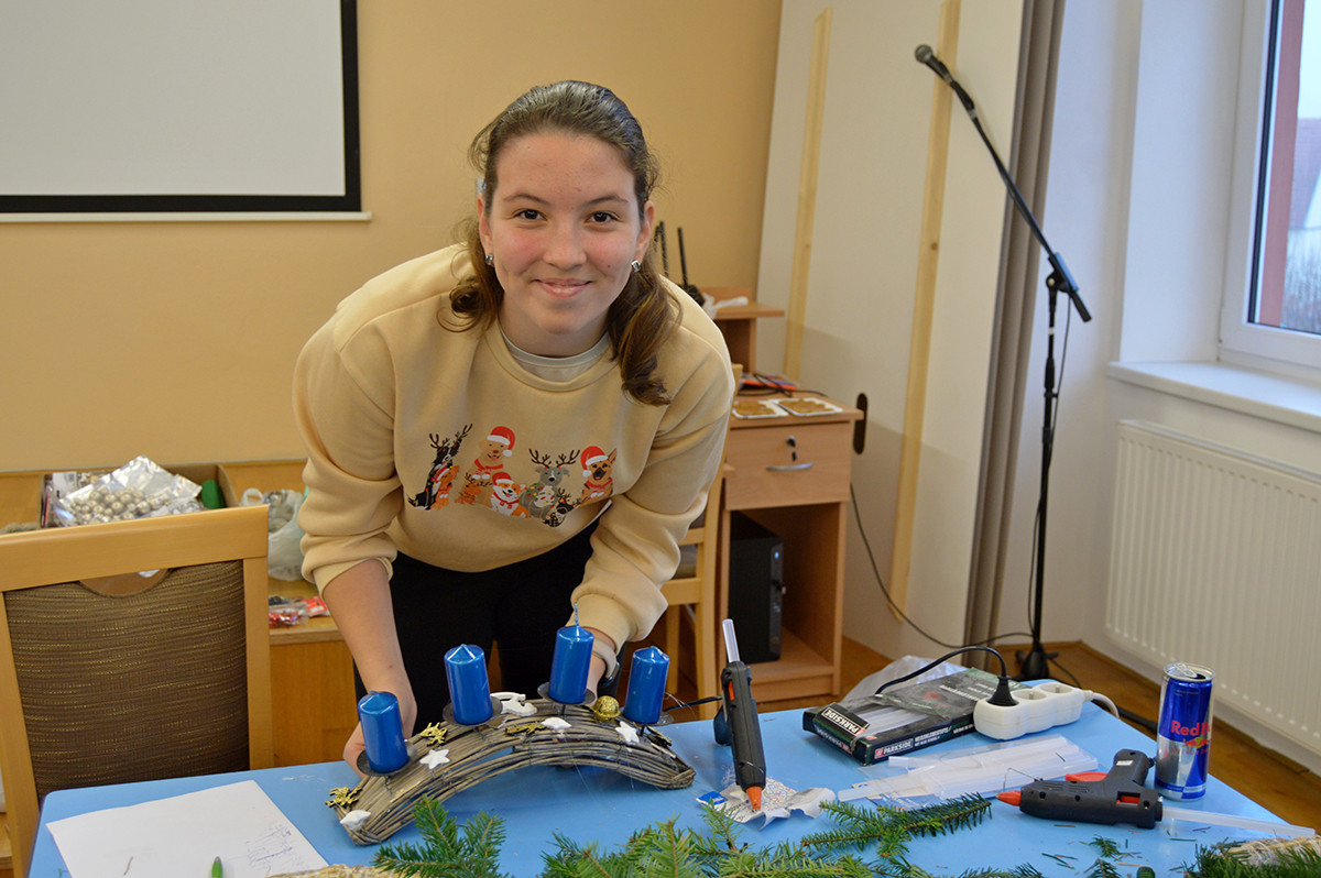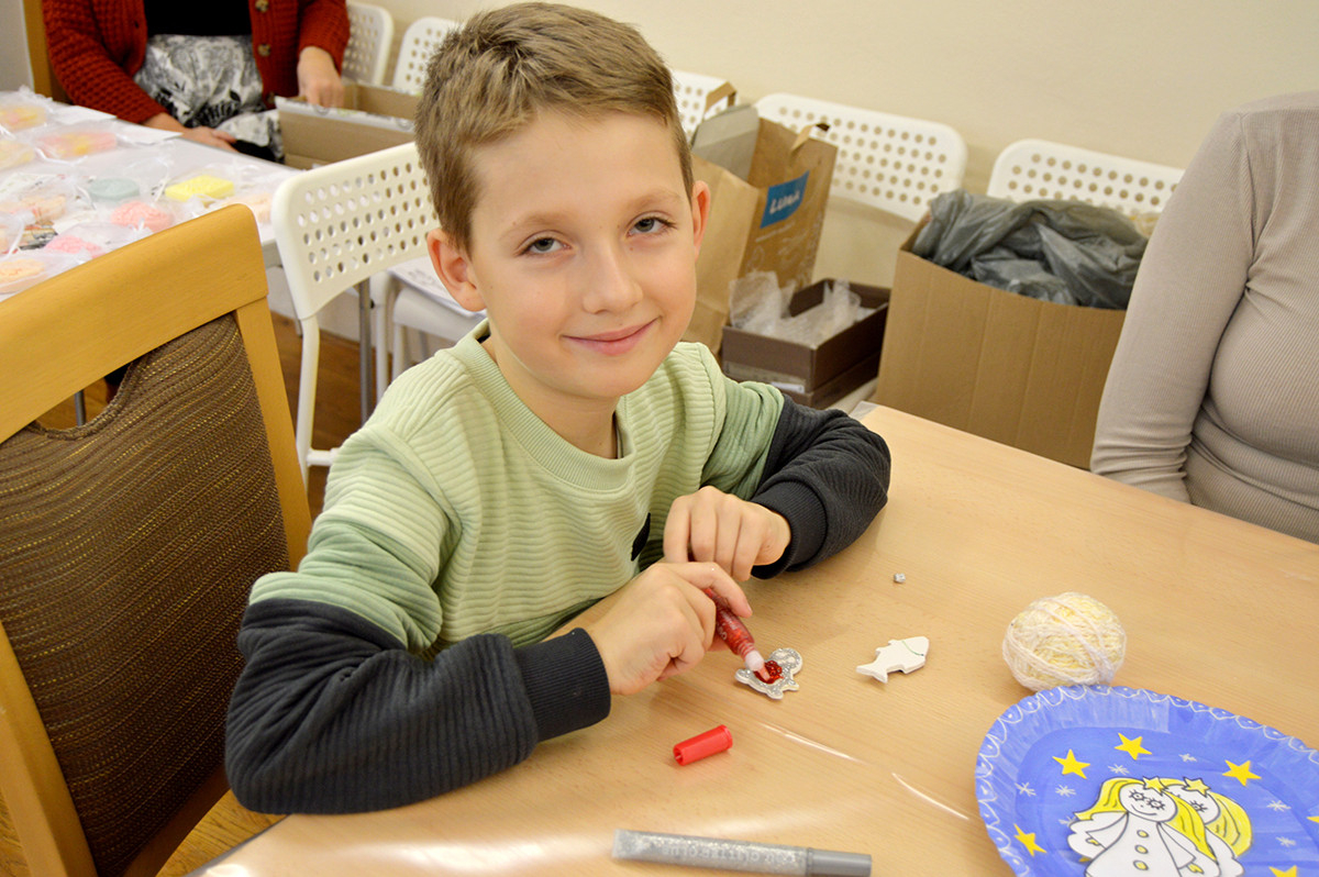 Než se tak stalo, přichystaly ženy z Komunitní školy, z.s. oblíbené adventní odpoledne. Vůně perníčků, koření a punče uhodila každého do nosu hned, jak otevřel dveře kulturního centra. Malí i velcí si mohli zhotovit adventní věnec, ozdobit perníčky, uplést dekoraci z papíru či si vyrobit vlastní náramek. Zvláště zdobení perníčků bylo velkým lákadlem pro děti, neboť při práci vždy ukápne nějaká cukrová poleva a ta moc dobře chutná. A některé děti ochutnaly hned i svůj nazdobený výtvor. V obležení dětí byl i dětský koutek, ve kterém si mohly namalovat magnetku, krásného anděla a vyrobit ledacos pěkného.