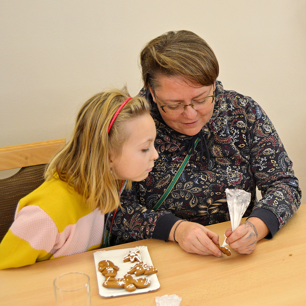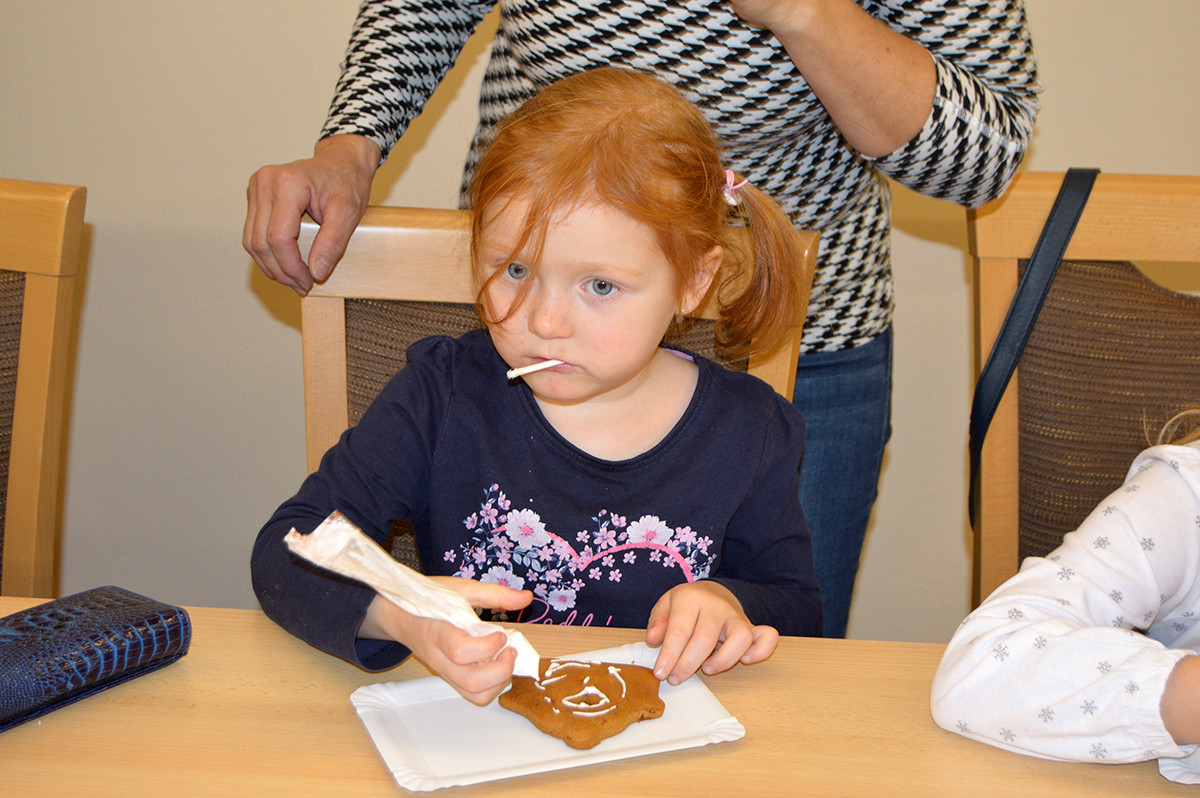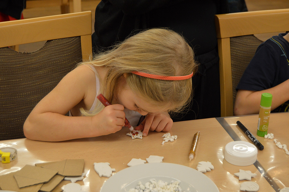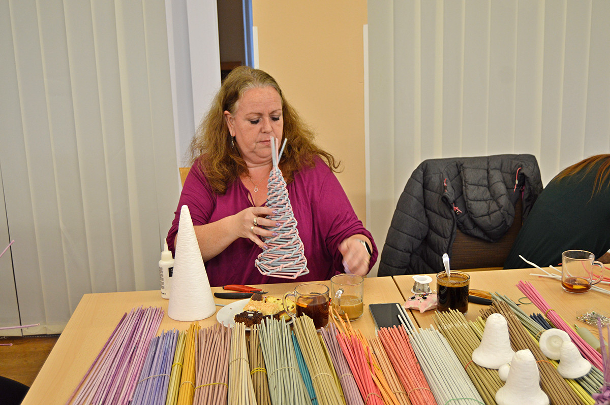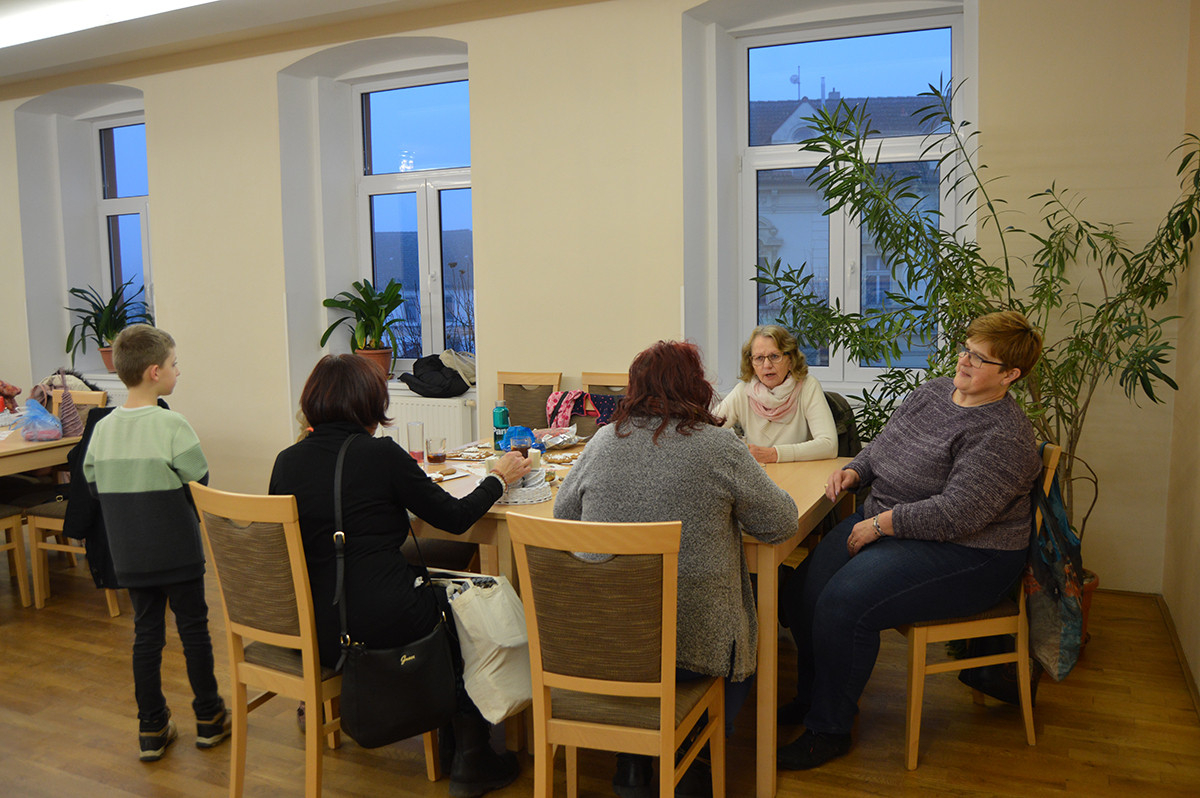 Než se tak stalo, přichystaly ženy z Komunitní školy, z.s. oblíbené adventní odpoledne. Vůně perníčků, koření a punče uhodila každého do nosu hned, jak otevřel dveře kulturního centra. Malí i velcí si mohli zhotovit adventní věnec, ozdobit perníčky, uplést dekoraci z papíru či si vyrobit vlastní náramek. Zvláště zdobení perníčků bylo velkým lákadlem pro děti, neboť při práci vždy ukápne nějaká cukrová poleva a ta moc dobře chutná. A některé děti ochutnaly hned i svůj nazdobený výtvor. V obležení dětí byl i dětský koutek, ve kterém si mohly namalovat magnetku, krásného anděla a vyrobit ledacos pěkného.