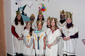 Tři skupinky po třech dětech a jedné vedoucí koledovali v Kasejovicích hned druhý den po Novém roce.