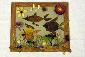 Setkání rodičů, dětí a učitelek při výrobě obrázků z listí a různých jiných přírodnin.