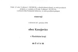 Kasejovice jsou od 1.prosince 2006 zase městem.