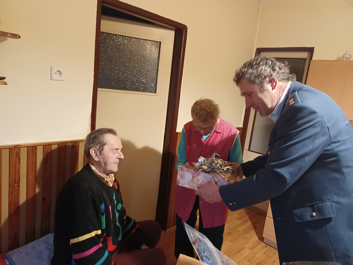 V ten den mu přišla popřát starostka paní Marie Čápová společně se zástupci sboru dobrovolných hasičů Josefem Tesařem a Miladou Myslivcovou.