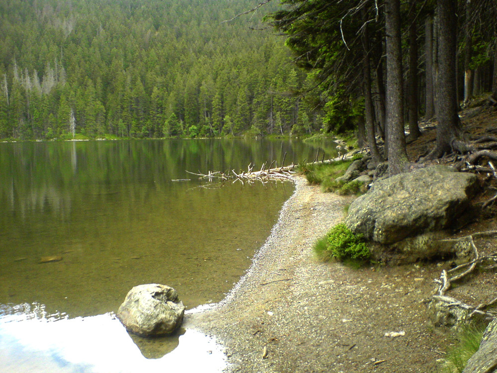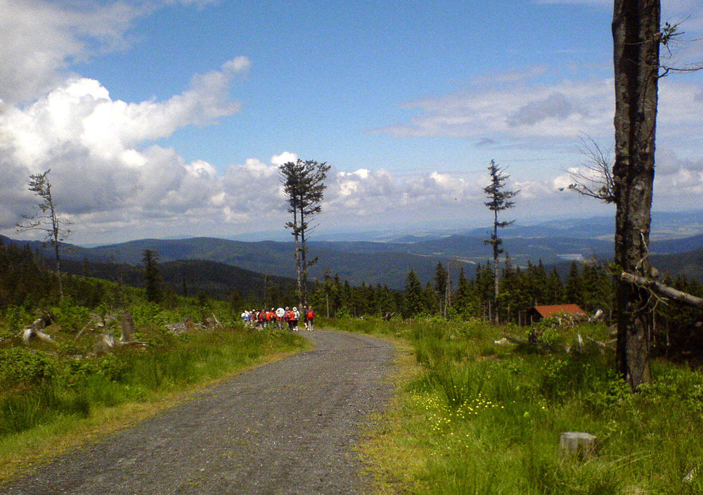 Když jsme vyšli z kostela, k radosti nás všech přestalo pršet. Těšili jsme se, že lanovka pojede a že si, i když trochu s obavami, prohlédneme svět z výšky. Po dešti byl krásný vzduch, voněl lesem a my jsme uprostřed té nádhery pomalu stoupali na vrchol. A pak jsme šlapali lesními stezkami a rozkvetlými loukami pořád z kopce až k Čertovu jezeru. Zde nám pan Moser povyprávěl legendy a příběhy vážící se k tomuto místu. Výlet skončil v místní restauraci... dobrým obědem.