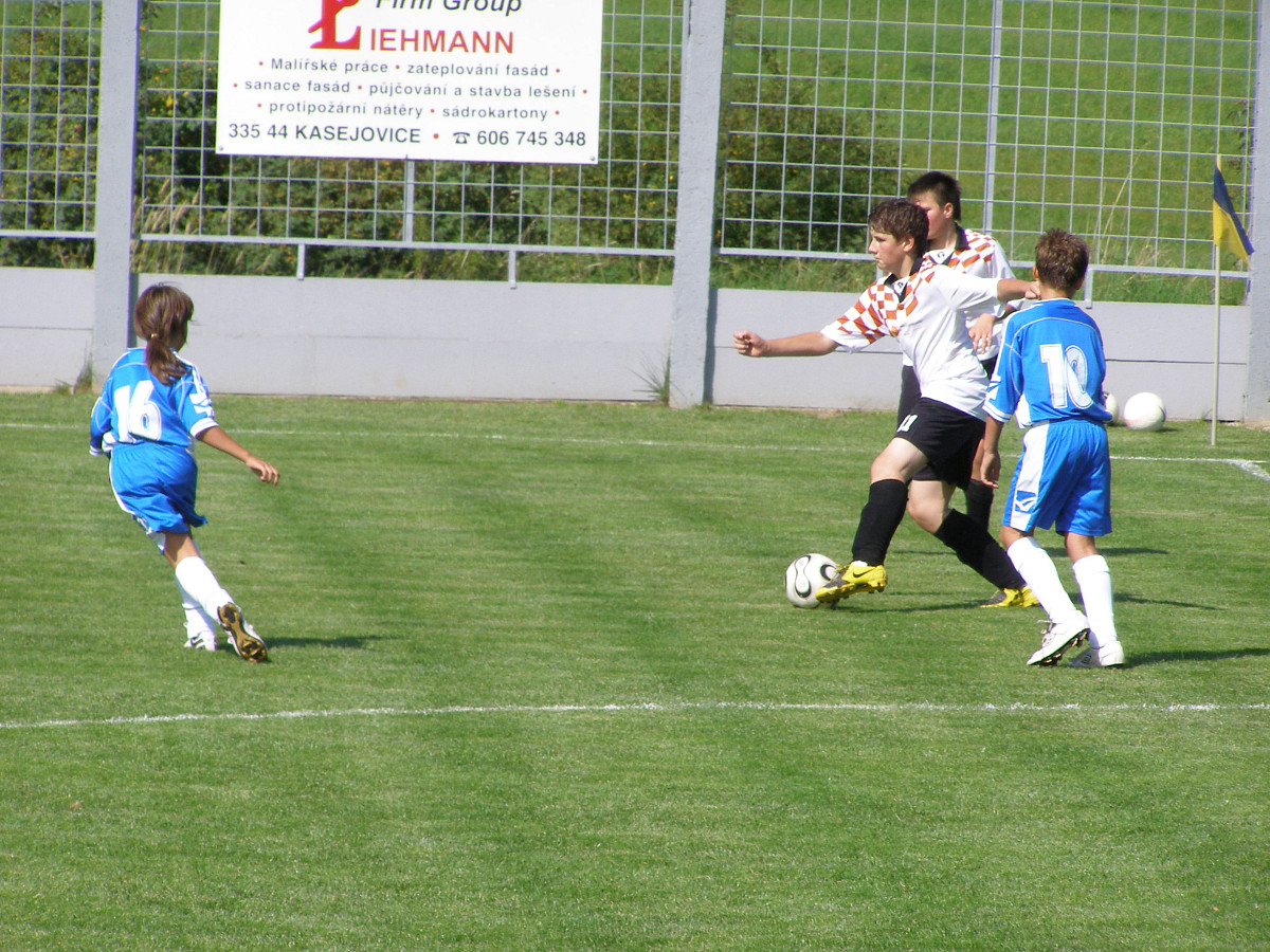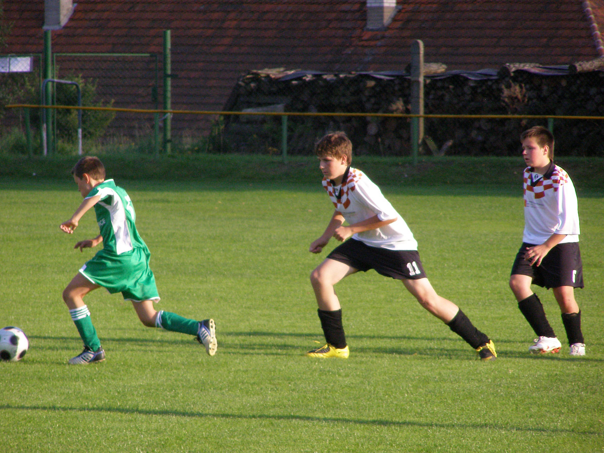 Na první pozvali nedaleké Záhoří, které bylo tím správným soupeřem na rozehrání a naši vyhráli 10:0. K druhému a o hodně těžšímu zápasu jsme vyjeli do Svéradic, kde žáci hrají krajskou soutěž. Tady se nám hra nedařila, byli jsme bez pohybu a soupeři jsme dávali hodně prostoru, o čemž vypovídá i výsledek, kdy jsme prohráli 1:5. V pondělí jsme si na domácí hřiště pozvali soupeře ze Starého Smolivce a opět se nedařila hra, kdy jsme i chvílemi hráli, ale nedokázali jsme proměňovat šance, a tak výsledek 1:3 odpovídal naší hře. Posledním soupeřem bylo mužstvo Bělčic, které k nám zavítalo ve středu. Naši měli převahu a soupeř těžil z brejků, kdy vždy chybovala naše obrana, a tak se ujal vedení. Kluci předváděli kombinační hru, které ovšem chyběla přesná koncovka. Výsledek 3:3 neodpovídal hře, neboť naši měli převahu. Věříme, že se klukům bude v soutěži dařit a že budou proměňovat vypracované šance.